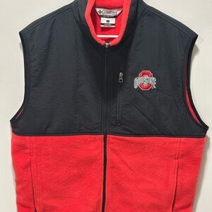 Columbia vest with Ohio State logo. Bold red and black design. Ideal for fans.