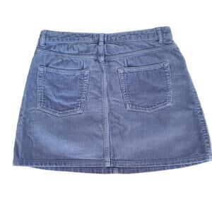 Sky-blue (gray undertone) corduroy Topshop skirt has a high-waist, pockets and a zipper. Fabric is medium-weight.