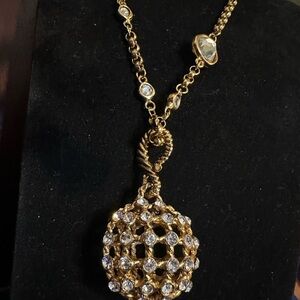 Blanca 36" Gold Tone Necklace with Crystal Ball Pendant Adjustable