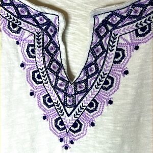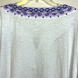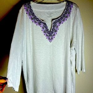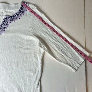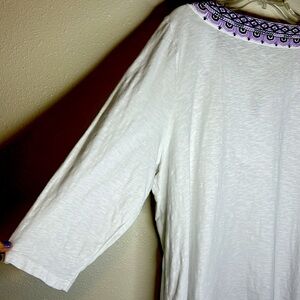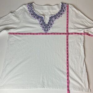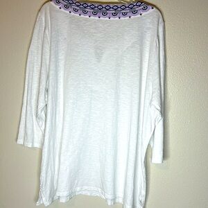 Talbots Embroidered V Neck Top Size 3X Petite White 3/4 Sleeve Boho Cotton