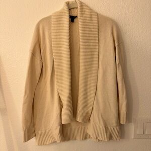Elegant cream cardigan with ribbed collar. Perfect for layering. Essential for any wardrobe.