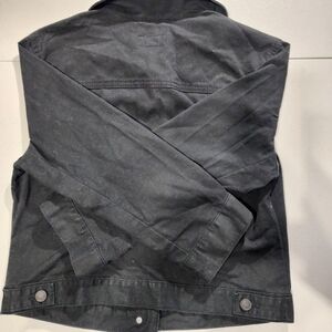 Stylish and durable black denim jacket for woman. Perfect for any occasion.