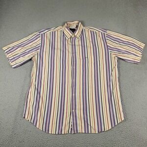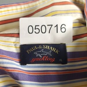 Paul & Shark Shirt Mens Size XL Purple Yellow Striped Button Up Short Sleeve