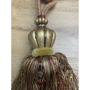 Vintage 1 Tie-back Tassel Golden Crown Finial Multicolor Threads 16” Large