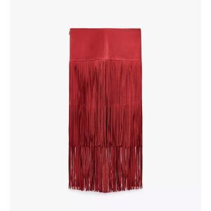 ❗️BUY NOW❗️ITEM WILL BE REMOVED SOON❗️Zara Suede Red Fringe Skirt