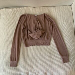 Aritzia Tna Waffle Knit Zip Up Hoodie Long Sleeve Jacket Top Purple Nude