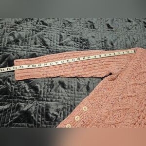 Stay cozy and stylish with this Merino wool blend thick cable knit sweater in speckled pink. Cute button detail down the one side that are fully functional.