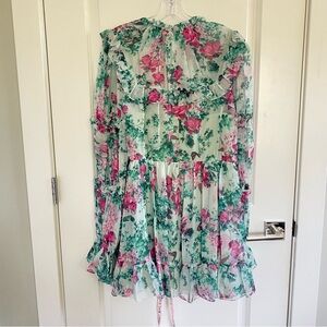 Chic floral mini dress. Features pink and green floral pattern. Ruffled sleeves and hem. Perfect for any occasion. Purchased NWT on Poshmark-size didn’t work out. So pretty!
