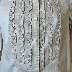 Ann Taylor Factory Petite Striped 3/4 Sleeve Ruffle Front Blouse Size 0P