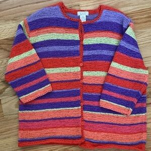 VTG Christopher Banks Rainbow Cardigan Knit Sweater Womens XL Artsy Art to Wear
