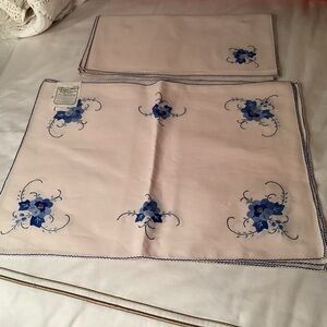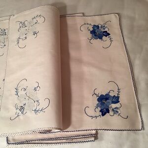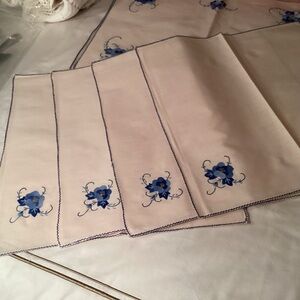 Elegant Vintage Blue Floral appliquéd Table Napkins & Placemats Set of 8 total