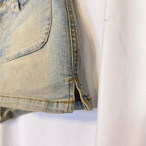 Chic light blue jean shorts by TILT. Features classic pockets and button closure. Ideal for casual wear.