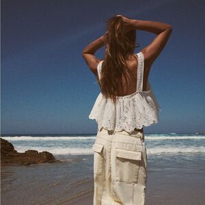 ZARA EMBROIDERED COTTON TOP OYSTER WHITE