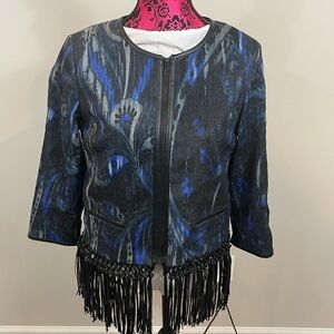 Tahari jacket size medium new material polyester and rayon color black blue and gray.