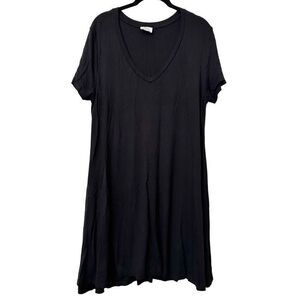 Zara Trafaluc V-neck Short Sleeve Jersey Knit Stretch Tunic Dress Black Large