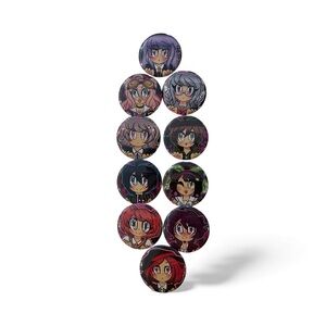 Set of anime character buttons featuring vibrant designs. Perfect for fans and collectors.