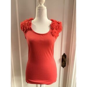 Rachael And Chloe Women's Floral Appliqué Top Size M Coral