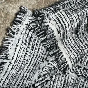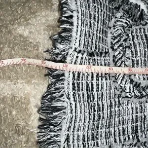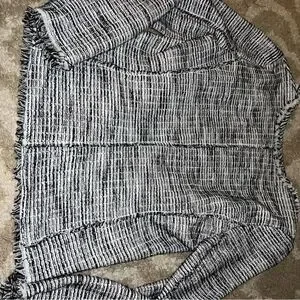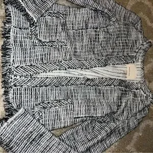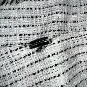 Elegant Chanel tweed jacket. Features a classic black and white pattern. Perfect for any occasion. No tag for materials but very well made.
