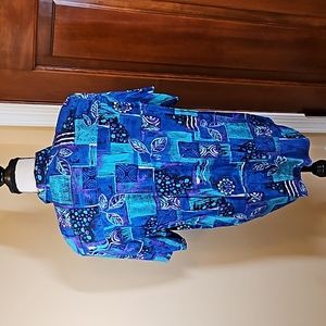 VINTAGE ALFRED DUNNER BLOUSE TOP BUTTON DOWN BLUE PURPLE 16 PALM LEAVES RETRO