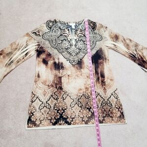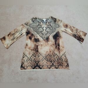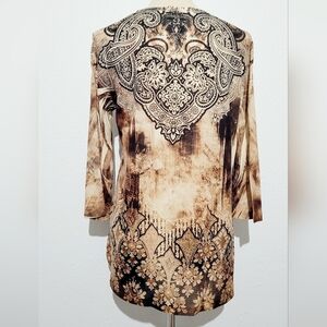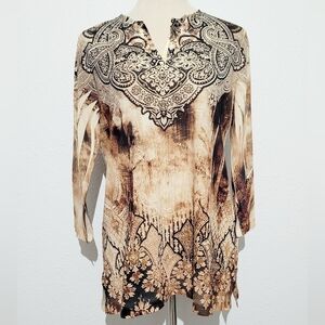 Chico's (1) Womans Tunic Top Jeweled/Beaded Brown Paisley Made In USA Size Small