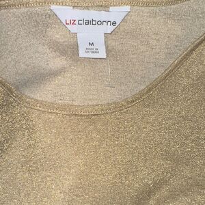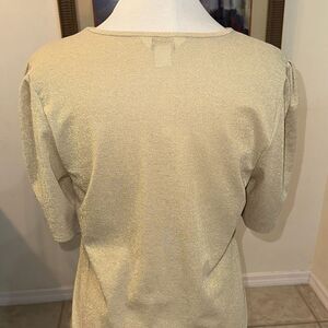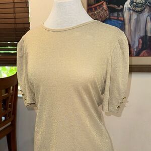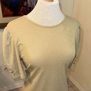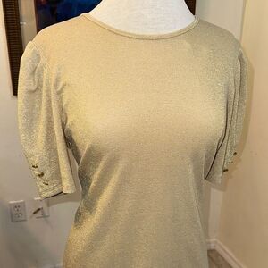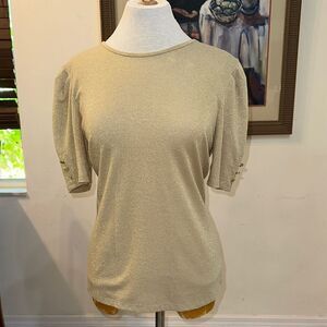 Liz Claiborne Gold Shimmer Puff Sleeve Top w/ Button Embellishments Size Medium