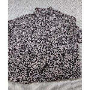ASOS Tunic Top Womens 12 Pink Black Animal Print Button Up Dolman