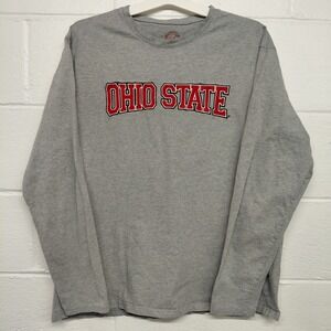 Ohio State Buckeyes Long Sleeve Shirt Mens LARGE Heathered Gray Sewn Patch Spell
