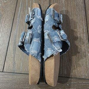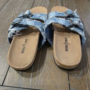 Minnetonka Patchwork Denim Sandals, Size 10
