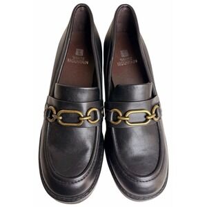 white mountain heeled loafers lug sole block heel chain loafer black vegan faux leather preppy retro womens 8.5 comfort shoes