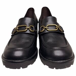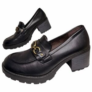 White Mountain Booster Chain Lug Sole Heeled Loafers Black Women's 8.5 Vegan Y2K