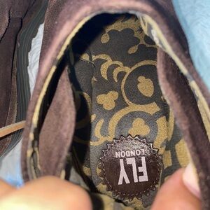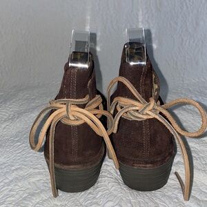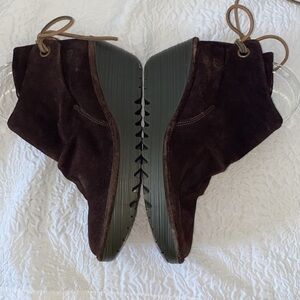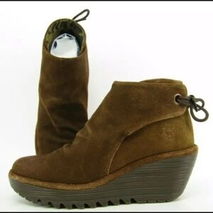 Fly London Yebi Suede Lace Up Tie Wedge Ankle Booties NWOT