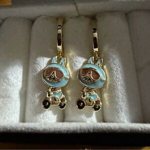 14K Gold Motorcycle/ Vespa Labubu Theme Enamel Hoop Earrings Kawaii Boutique