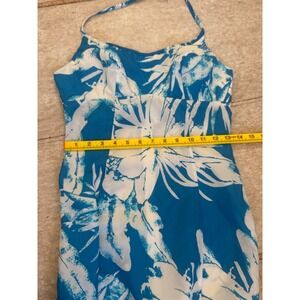 Vintage 70s Sun Fashions of Hawaii Blue Floral Halter Maxi Dress Ruffle Sz 4–6
