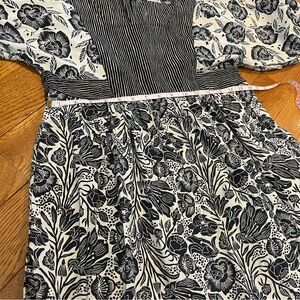 This dress by Blooming Print for Anthropologie features a mixed motif of floral and striped print