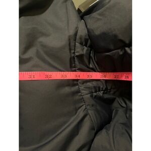 Good preowned condition. Coat is warm and puffy with no tears or holes. One button snap is chipped. Interior faux shearling has signs of wear. Faux fur on hood has a sticky consistency to it even after washing. Light stains around buttons where I applied Brasso.