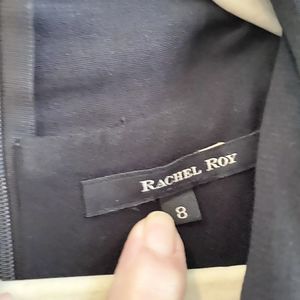 RACHEL Rachel Roy Black Tie V-neck Elastic Waistband Dress size 8 Zipper Back