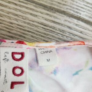 Dolan Anthropologie Top M Pink Multi Floral Silky Ruffle Sleeve Buttoned Blouse