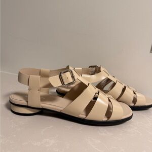Chic cream sandals with strappy design. Comfortable and stylish for any outing.