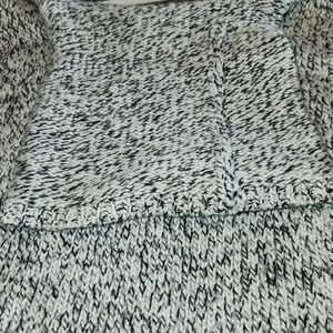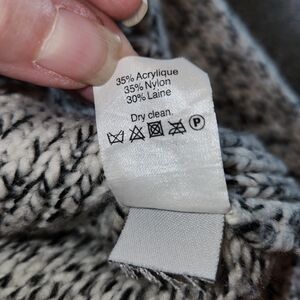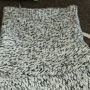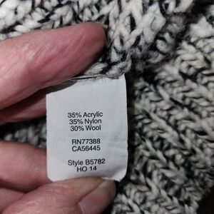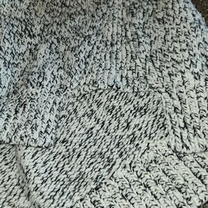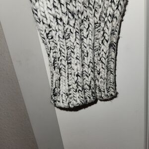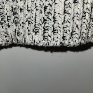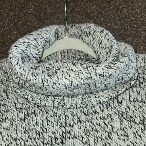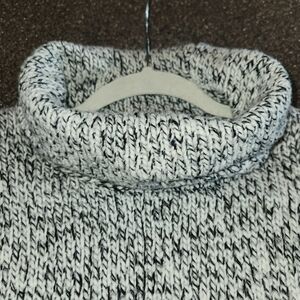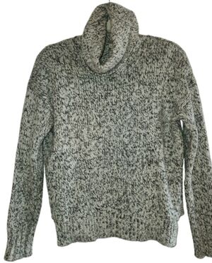 This Madewell cozy turtleneck with a marled black & cream wool blend is Ideal for layering or wearing alone. Warm and comfortable with side vents making this a loose fit. Ribbed cuffs and hem. You will grab this often as it is so neutral and can be styled in many ways.