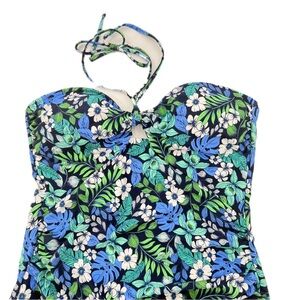 LOFT Swim Blue and Teal One-Piece Swimsuit Halter Tie Floral Design Size XL NEW!