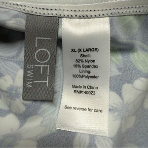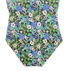Dive into style with this LOFT one-piece swimsuit, showcasing a vibrant floral pattern in shades of blue and green. The classic full-coverage design and sweetheart neckline offer a timeless look, perfect for any swim occasion. Enjoy a touch of retro charm with its scattered floral print, making it a standout piece for your swimwear collection.