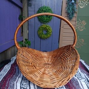 VTG Large Wicker Flower Foraging Wicker Flat Basket Top Handle Boho Cottagecore