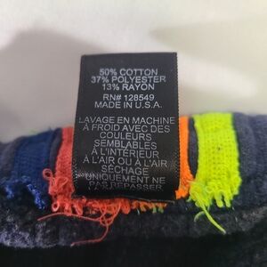 Stylish blue joggers featuring vibrant neon orange and yellow side stripes. Perfect for casual wear.