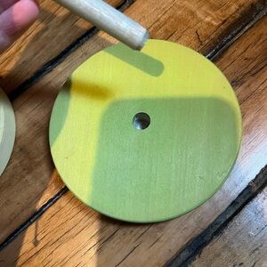 Decent condition. The rod comes out, just needs to be glued in, all pieces. It’s been played with but lots of life left. See all photos.