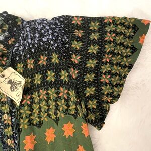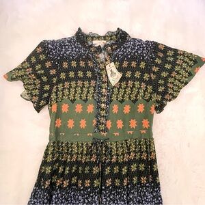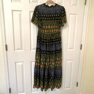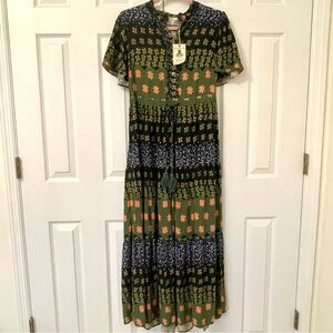 NWT Easel Blue & Green Jewel Tone Floral Patchwork Tiered Long Dress