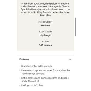 Patagonia Classic Synchilla full zip fleece jacket , Black, Size S F14