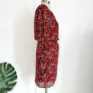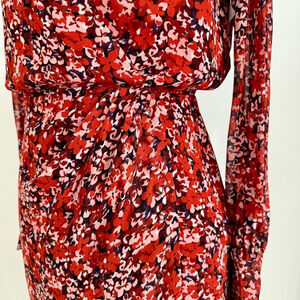 The Kooples Red Floral Long Sheer Sleeve Mini Wrap Dress Womens Size 0 Paris
