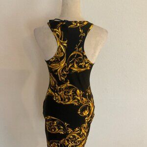 Super fitted minidress with a sporty racerback design, features signature filigree print.