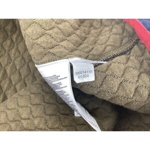 The Brooks Brothers Blue Quilted 1/4 Zip Pullover Sweater in size M is a classic and stylish option for casual occasions during the winter and fall seasons. Made from cotton knit fabric, this sweater features a solid blue color with red trim and accents, a mock neck neckline, long sleeves, and a regular fit. The 1/4 zip design adds a modern touch to this classic pullover style, making it a versatile addition to any man's wardrobe.