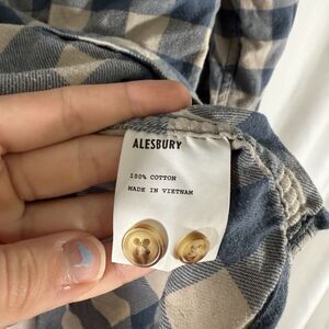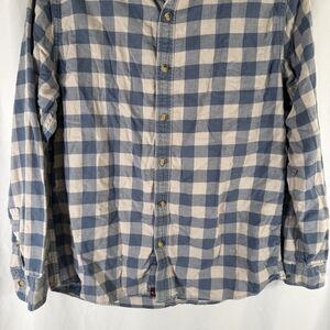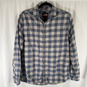 Alesbury Flannel Shirt Mens Medium Blue White Plaid Button Up Long Sleeve Cotton